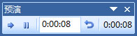进入“幻灯片放映”选项卡,然后单击“排练记时”,此时,左上方会出现一个“预演”记时(如下图),可以让你当作排练演示,记录你在当前幻灯片上演示了多长时间。
